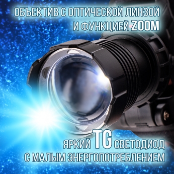 - тип фонаря: налобный, аккумуляторный, многофункциональный.