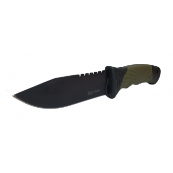 Модель 1718E – практичный туристический нож с фиксированным клинком, серрейтором, стропорезом и стеклобоем. Клинок, напоминающий профиль копья, с односторонней заточкой по форме SPEAR POINT. Заточка лезвия традиционная и серрейторная. Сталь нержавеющая, износостойкая, с нанесением специального защитного покрытия, которое не боится коррозии и легко поддается заточке. Стропорез на верхней части обуха станет хорошим помощником при разрезании веревок, строп, канатов. Рукоять широкая, ухватистая, хорошо лежит в руке и не скользит, изготовлена из прочного пластика и обрезиненная. На конце рукояти стеклобой, который послужит хорошим помощником в непредвиденных ситуация не только для обычных пользователей, но и для профессионалов спасателей. Пластиковые ножны с креплением под ремень, надежно фиксируют нож. Не один турист, охотник, рыбак не обойдется без ножа, который является предметом снаряжения и пригодится на все случаи жизни. Броский вызывающий внешний вид послужит хорошим подарком для поклонников активного образа жизни.