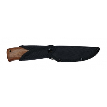 Модель FB932M – туристический, универсальный нож, с фиксированным клинком, по форме TRAILING- POINT. . Острие клинка слегка изогнуто вверх относительно обуха, тем самым увеличивает режущую кромку и предотвращает колющие действия. Сталь углеродистая, нержавеющая, устойчива к ударным нагрузкам. Легко и быстро поддается заточке, не боится коррозии. Рукоять деревянная с металлическим наконечником, хорошо лежит в руке и не скользит. Имеется небольшие углубления под пальцы. Нож универсальный, предназначен для широкого спектра работ. Данная модель хорошо подойдет для бытовых нужд, кухонных работ, на пикнике, в лесу, на воде. Не один турист, охотник, рыбак не обойдется без ножа, который является предметом снаряжения и пригодится на все случаи жизни. Броский, вызывающий внешний вид, послужит хорошим подарком, для поклонников активного образа жизни.