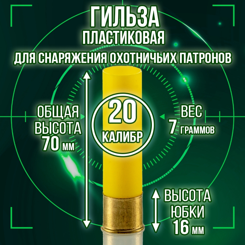 Гильза пластиковая 20 калибр, без капсюля, 16/70мм, уп100шт. (Россия)