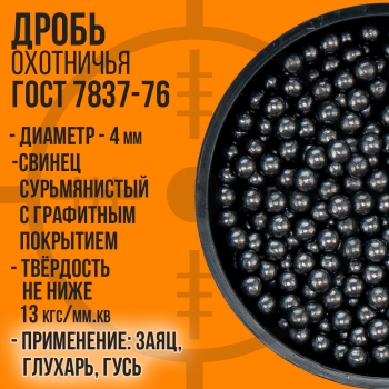 Дробь охотничья/ свинцовая / ШОТ- №4 / 1кг