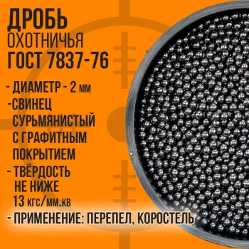 Дробь охотничья/ свинцовая / ШОТ- №2 / 1кг