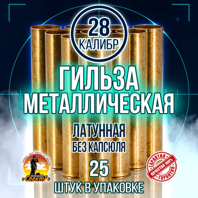 Гильза латунная 28 калибр, без капсюля, 70мм, уп25шт.(TULAMMO)