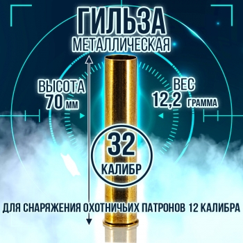 Гильза латунная 32 калибр, без капсюля, 70мм, уп25шт.(TULAMMO)