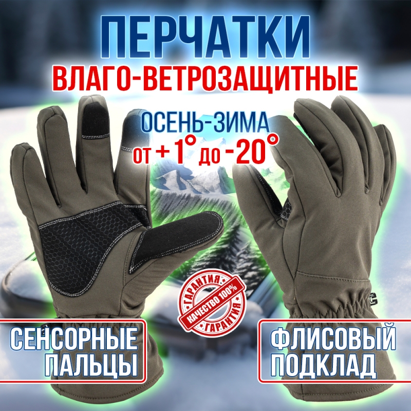 Перчатки утепленные на флисе/ сенсорные/ непромокаемые/ осень-зима, зеленые, XL-XXL ( LXY8007-2)