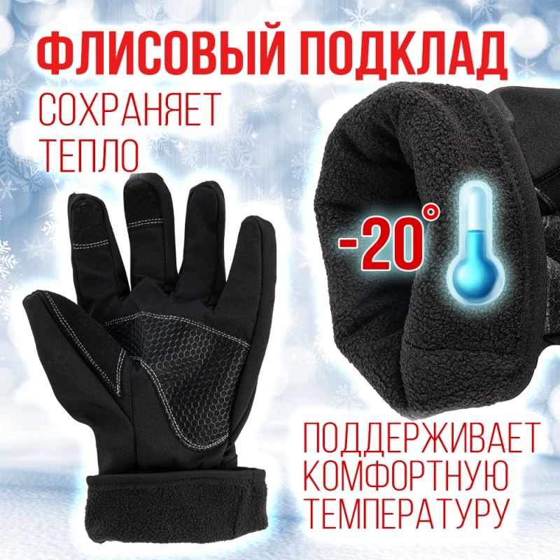 Перчатки утепленные на флисе/ сенсорные/ непромокаемые/ осень-зима, черные, XL-XXL ( LXY8007-1)