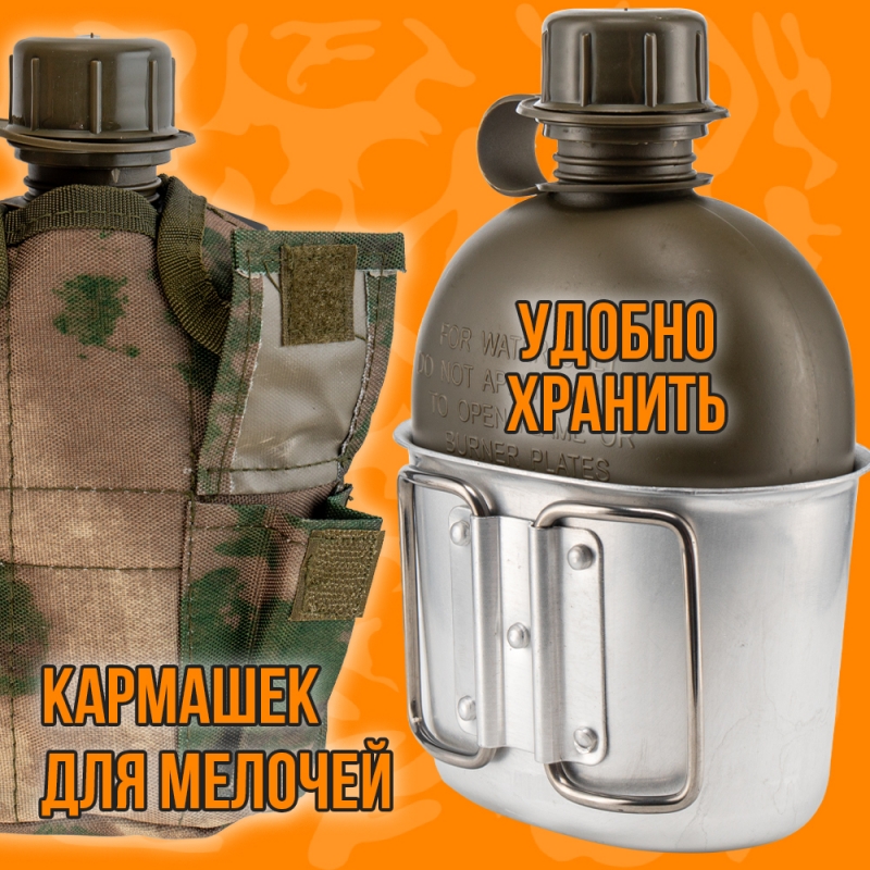 - состав: армейская фляга, котелок, чехол с кармашком для переноса.