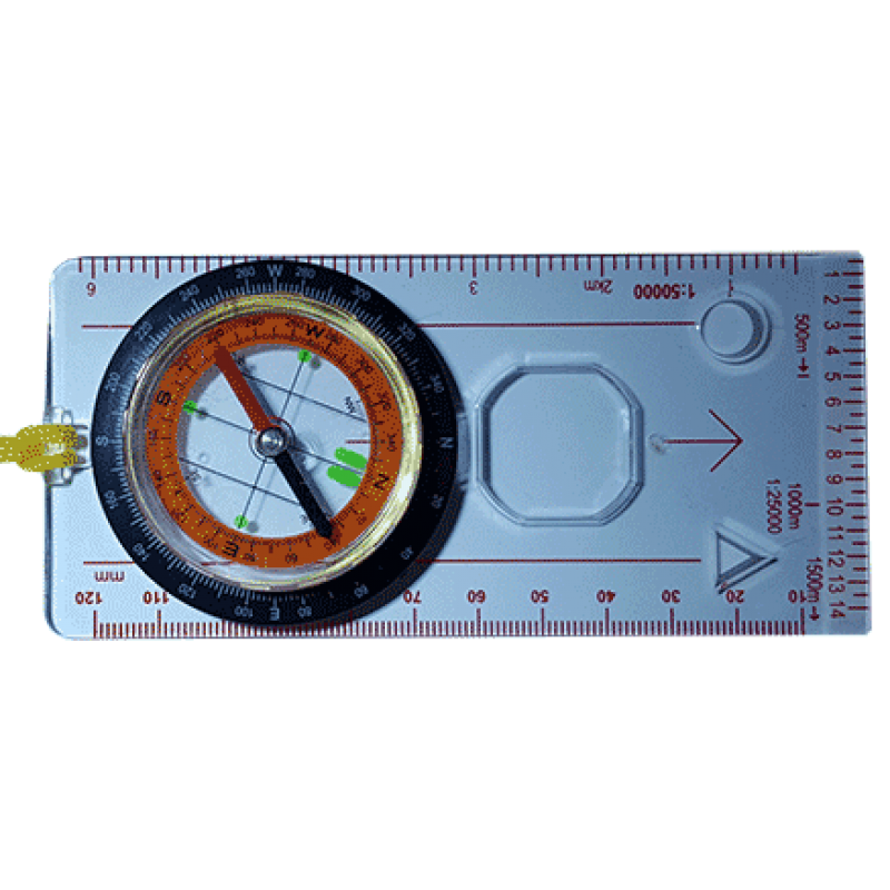 Модель DC45-5C – спортивный, инженерный компас жидкостного типа для работы с картами. Особенностью является легкий, прочный, прозрачный пластиковый корпус по форме планшета-линейки с встроенным компасом, заполненный демпфирующей жидкостью, для погашения и стабилизации колебаний магнитной стрелки. Стороны света обозначены люминесцентными красками, для работы в темное время суток. Циферблат дисковый вращающийся с нанесением шкалы в градусах. На дне компаса нанесены параллельные линии, для ориентирования по линиям магнитного меридиана и индексы S/N/W/E, для правильной ориентации относительно севера. Прозрачный корпус имеет сантиметровую линейку, два деления в масштабе 1:50000 и 1:25000 , специальные направляющие красные линии (для движения по азимуту), стрелку (движение строго на север), отверстие – трафарет и увеличительную лупу. Также имеется отверстие и нейлоновый шнурок, для ношения на шее. Данная модель инженерного компаса предназначена для расчета маршрута, ориентирования на карте, вычисления магнитного азимута, а также прекрасно поможет, находясь в незнакомой местности, не заблудится и послужит хорошим подарком для людей ведущих активный образ жизни.