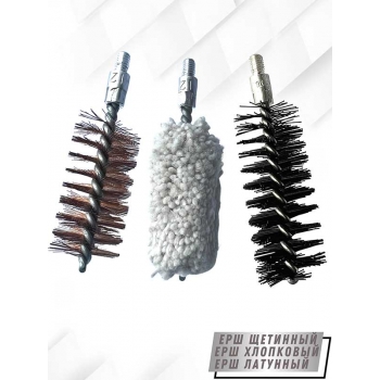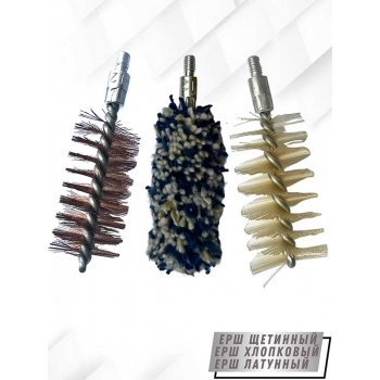 - Вид щеток: - ерш щетинный Латунный; - ерш щетинистый Нейлоновый; - ерш Хлопковый, резьба наружная М5.