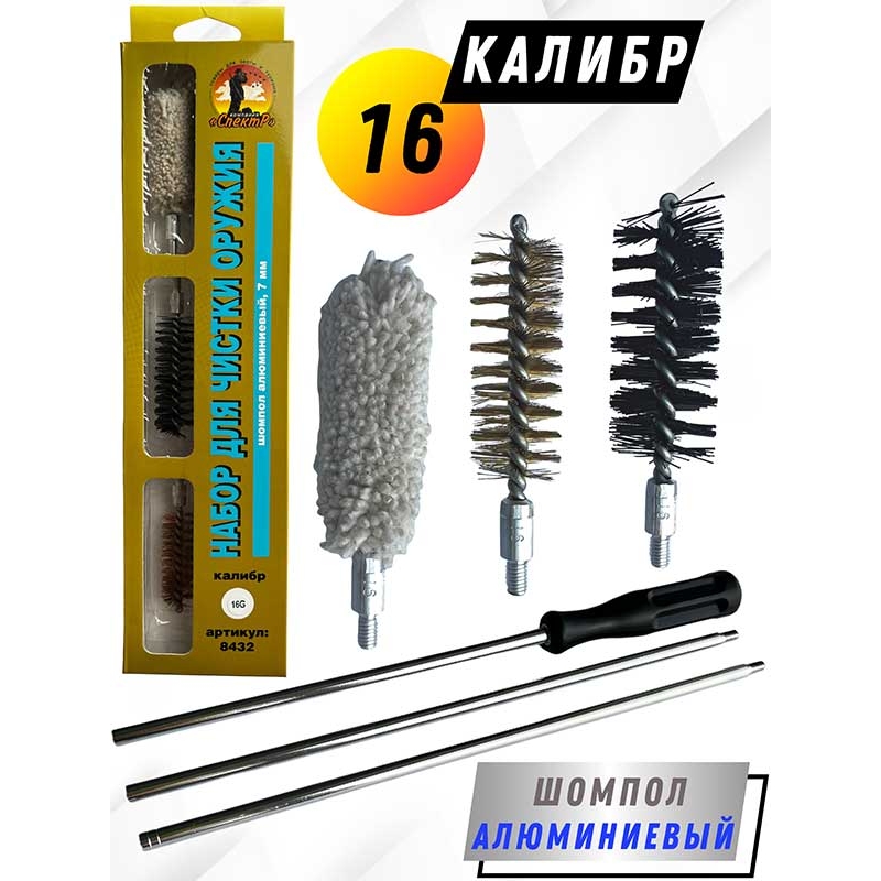 Набор для чистки оружия 16клб в БЛИСТЕРЕ с алюминиевым шомполом 7мм (8432-16).