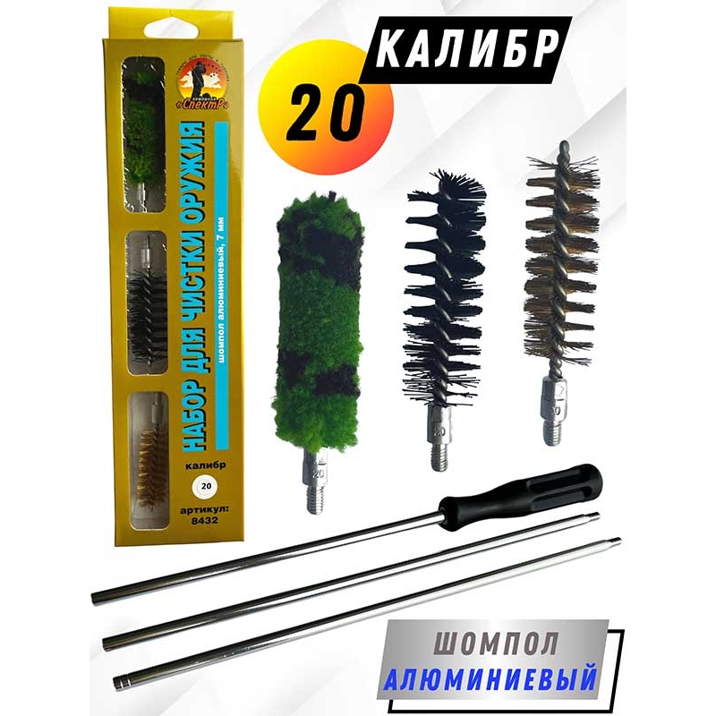 - Состав набора: шомпол, щетки(3шт), бокс.