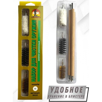 Набор для чистки оружия 410клб в БЛИСТЕРЕ с деревянным шомполом (8433-410)