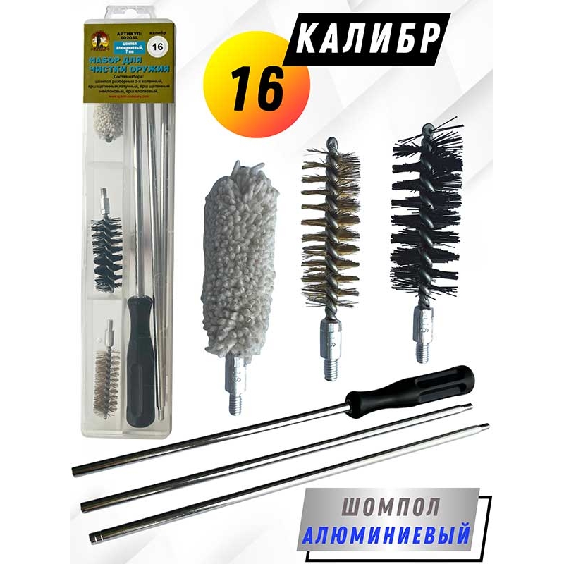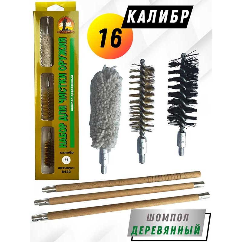 Набор для чистки оружия 16клб в БЛИСТЕРЕ с деревянным шомполом (8433-16)