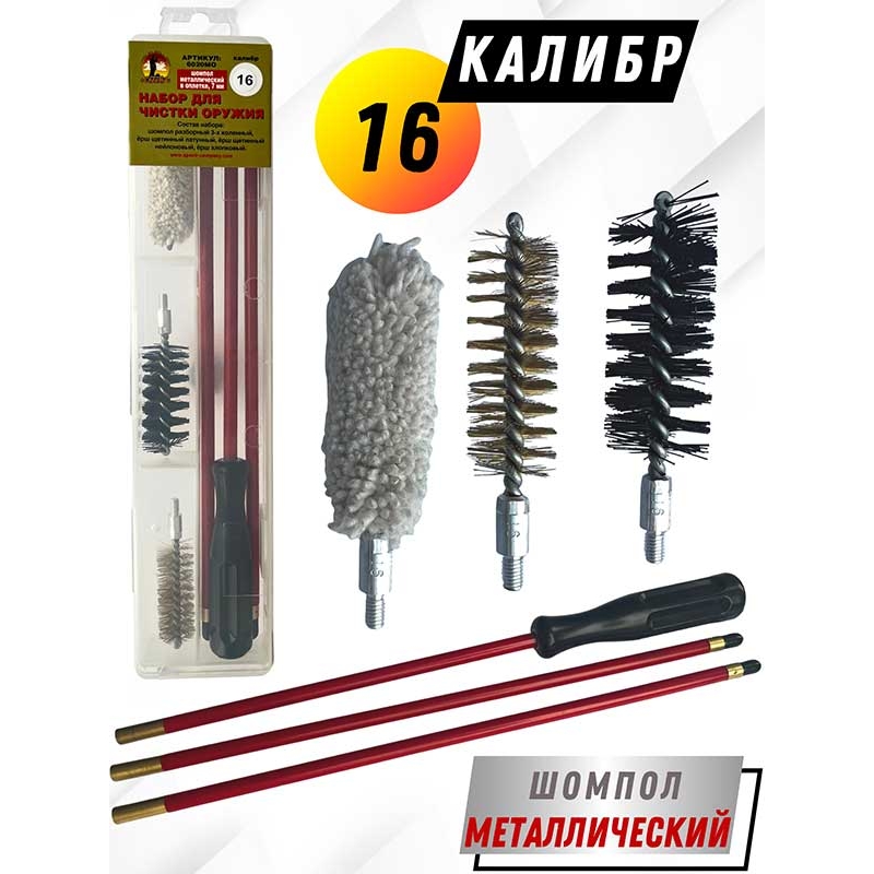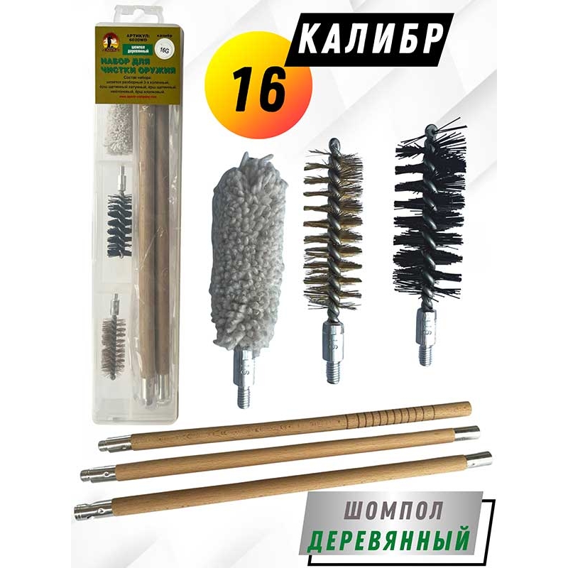 - Состав набора: шомпол, щетки(3шт), бокс.