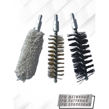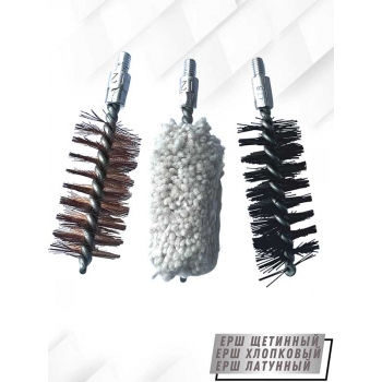 - Вид щеток: - ерш щетинный Латунный; - ерш щетинистый Нейлоновый; - ерш Хлопковый, резьба наружная М5.