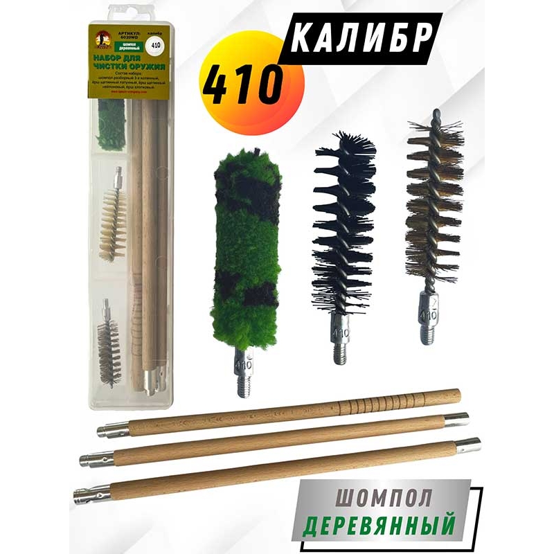 Набор для чистки оружия 410клб в ПРОЗРАЧНОМ КЕЙСЕ с деревянным шомполом (6020WD-410).