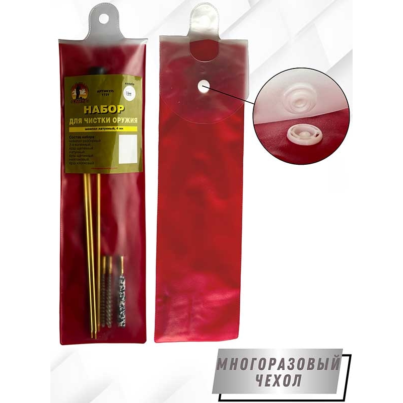 - Состав набора: шомпол, щетки(3шт), чехол с евро подвесом.