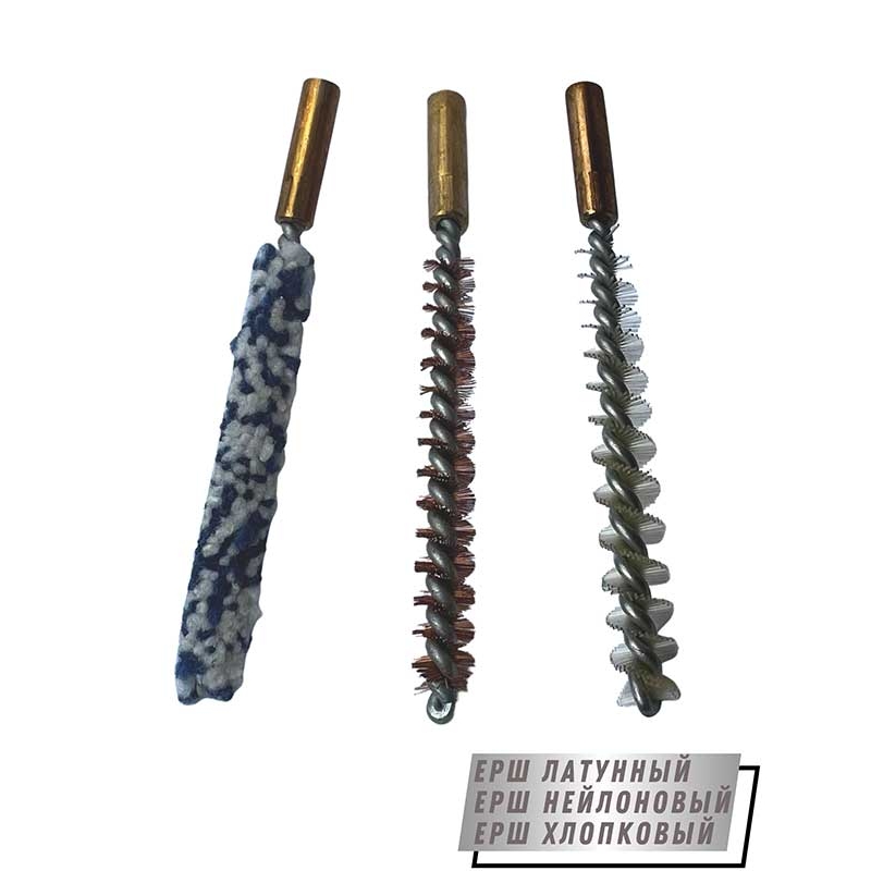 - Вид щеток: - ерш щетинный Латунный; - ерш щетинистый Нейлоновый; - ерш Хлопковый (тканевый).